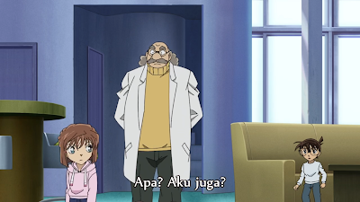 Ingat ya, disini Prof. Agasa ingin Haibara mengambil uang cash terlebih dahulu. Jika kita melihat sampai akhir dari episode ini yang kasusnya berfokus pada Haibara, sangat jelas bahwa Prof. Agasa sering meminta tolong Haibara untuk ambil uang cash SENDIRIAN. Alih-alih mengambil uang sendirian, Haibara justru malah mengajak Conan. Bahkan Conan sampe bilang, "Lah, aku juga ikutan ambil duit cash?" Hayo, Haibara.. mau modus ya :) kamu ingin berduaan sama Conan kan.